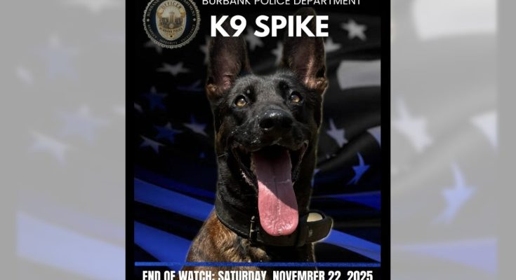 The canine, named Spike, located the suspect, who fired multiple rounds from a handgun, striking the dog and then fleeing on foot.