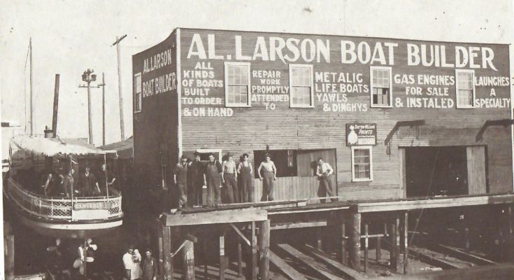 He founded the Al Larson Boat Shop on the Salt Lake Wharf at the harbor in Wilmington in 1903. At that time, most of the structures in the harbor were built on stilts, and transportation from place to place could be accomplished only by boat.