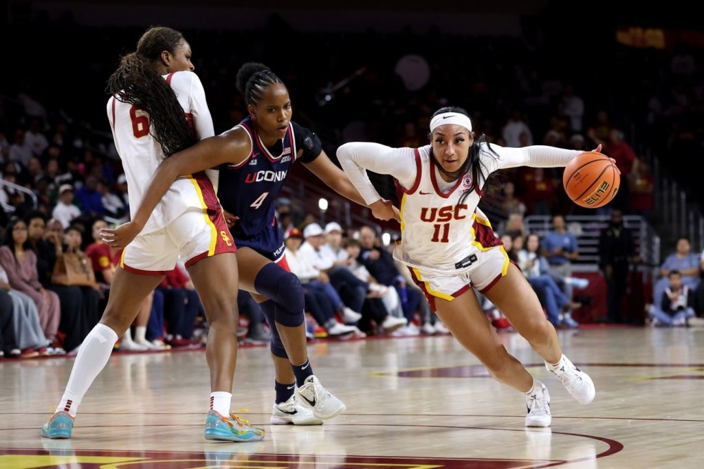 No. 3 South Carolina and No. 1 Connecticut are the only teams to be somewhat successful in taking her out of the Trojans’ equation so far this season. She put up eight points against the Gamecocks and 10 against the Huskies, who used their size and physicality against her.